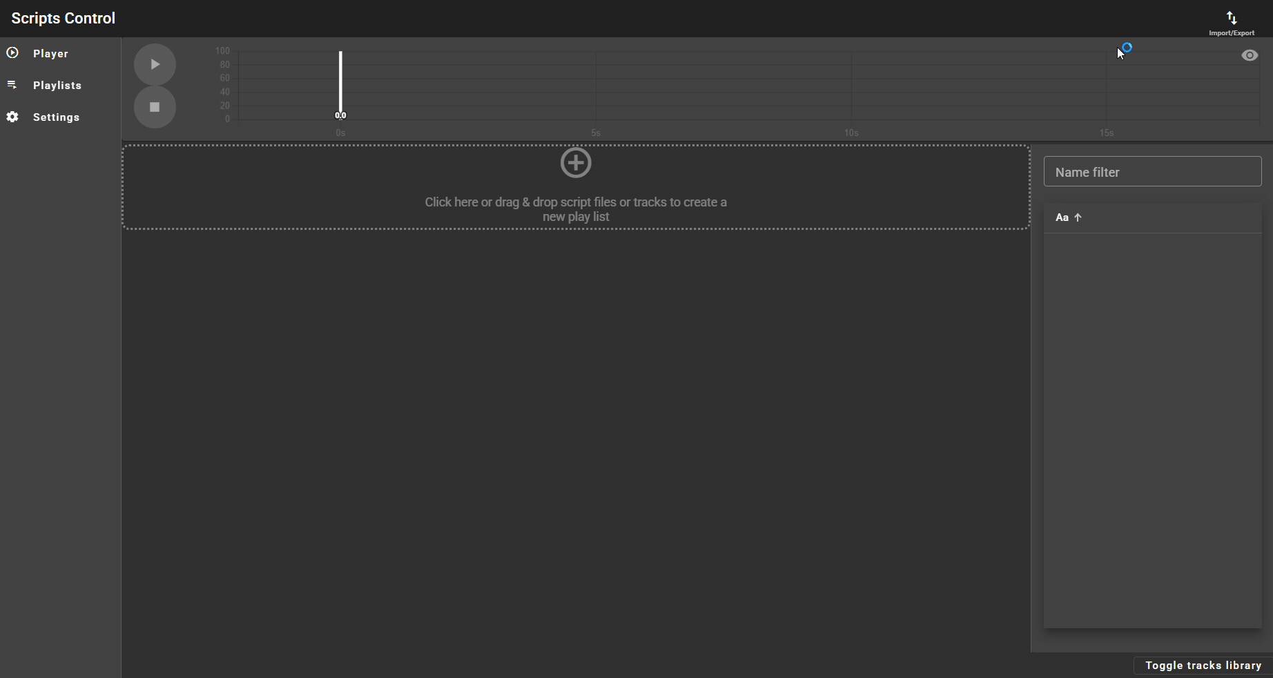Simply click on the new playlist area to import a script file. Or drop a track from the library.