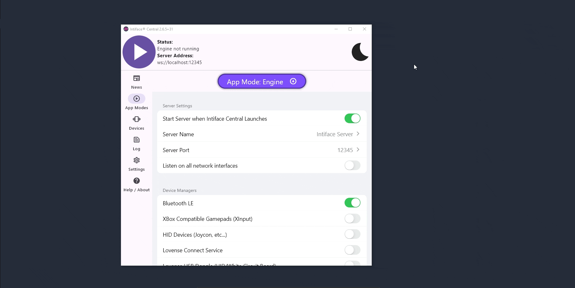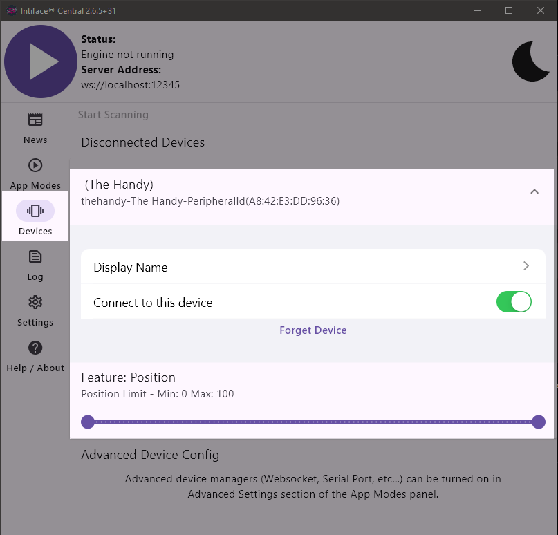 After that, any devices connected via Bluetooth to your desktop should be detected soon and visible in Intiface Central > Devices: